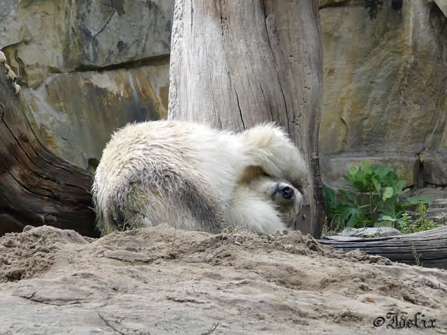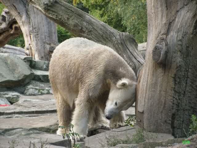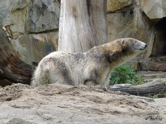 Ich bin etwas erschrocken, als ich das Foto vom nassen, im Wasser stehenden Knut gesehen habe. Er sieht da doch ziemlich dünn aus. Ist das normal oder nimmt er vor lauter Stress ab? Wirklich glücklich scheint er ja mit der Situation nach wie vor nicht zu sein. Ich hoffe jeden Tag, dass sich das ändert und die beiden einen richtigen Zugang zueinander bekommen.