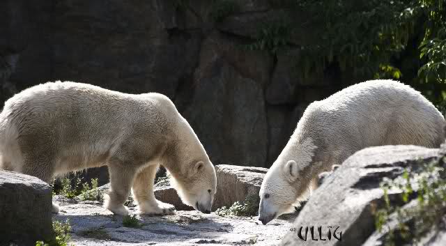 Danke für die heutigen aktuellen Berichte und Fotos vom 1. Tag, einem aufregenden Tag für beide Bären. Auch wenn es doch ab und zu kurz die spezielle Knut Tapirlippe gab, der Tag verlief doch überwiegend harmonisch.