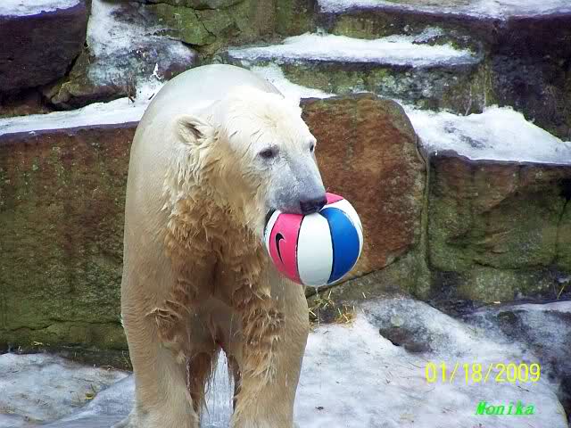 Als ich Nancy heute so süß mit einem Ball spielen sah, musste ich daran denken, dass auch Knut viel Spaß damit gehabt hätte. Er liebte Bälle.
