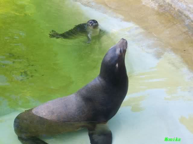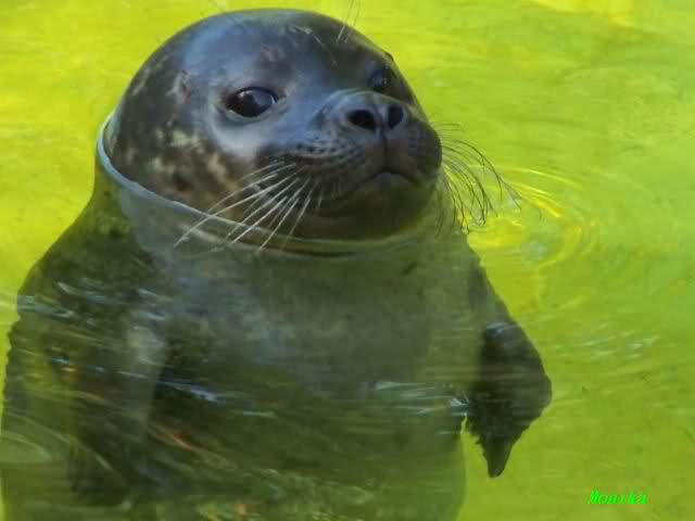 Heute Nachmittag wurden die großen Seehunde eingesperrt. Mandy und Hilde sollten lernen Fische aus der Hand der Pflegerin zu nehmen. Mandy war schon ein bißchen mutig und bekam so drei Fische. Hilde war noch zu ängstlich.