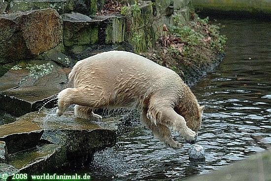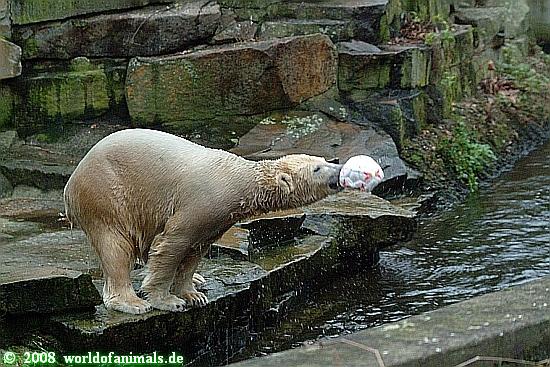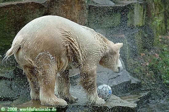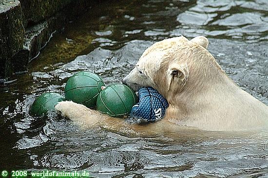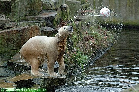 Und Bälle zu den Besuchern werfen, das haben auch große Eisbären in anderen Zoos drauf.