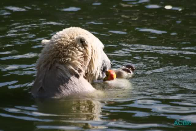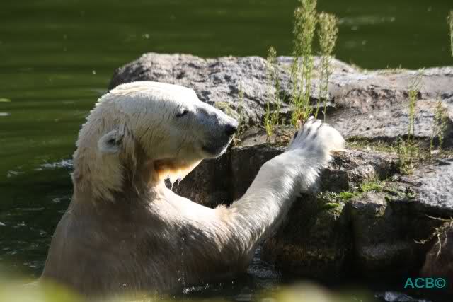 Good evening to you all international Knut friends. I was in Zoo at afternoon today. Knut was playing in water, he was in contact with his public and he we had the chance to watch his little aerobic show Hope to post a little video tonight.