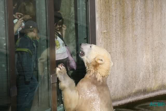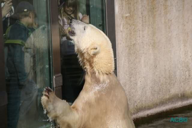 Die Kommentare von erwachsenen Menschen ließen mich dann doch nur noch den Kopf schütteln: Kinder passen in das Beuteschema des Eisbären, darum ist er an der Scheibe.Punkt.