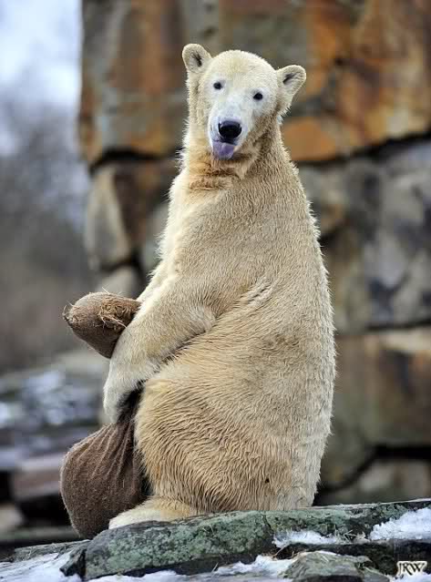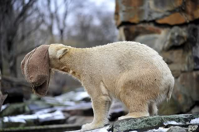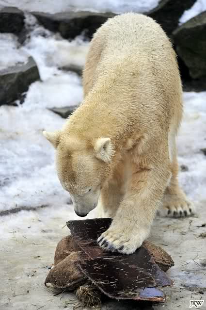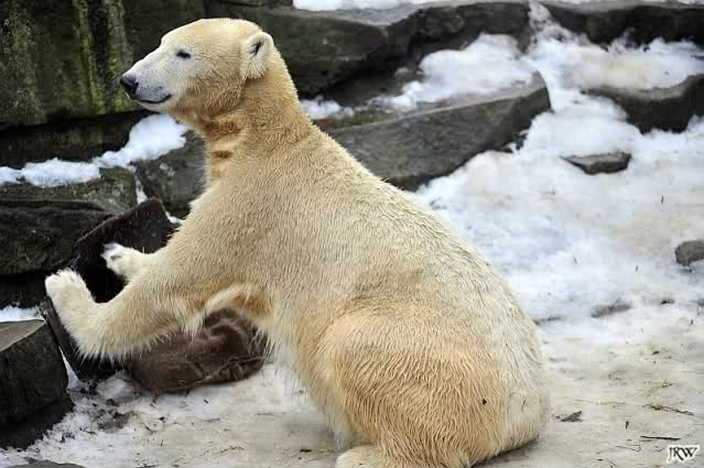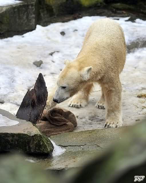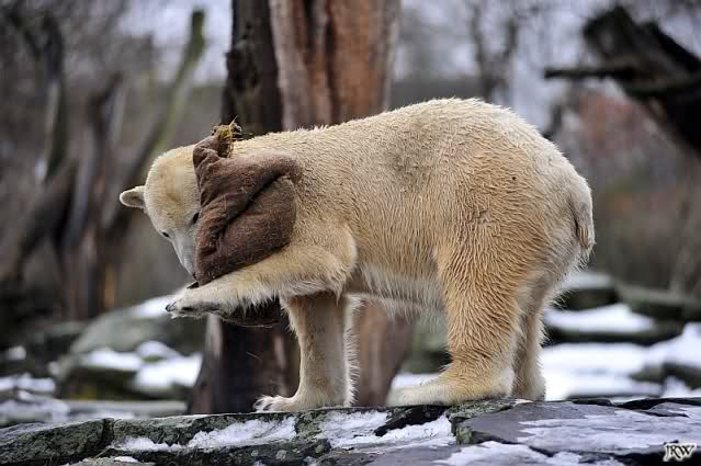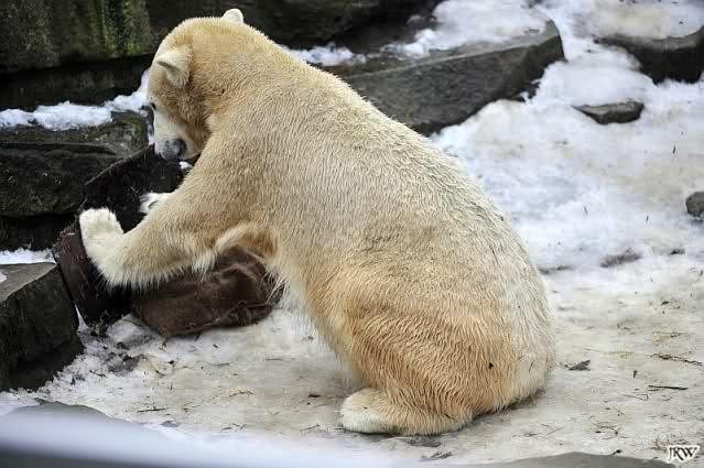das ist mal wieder eine Geschichte, die einem das alte Knut-Lächeln ins Gesicht zaubert. Es ist gut, zu sehen, wie er den Schlauch im Schlaf an sich drückt, und dabei lächelt,als hätte er einen schönen Traum . Seine Turnübungen im Schnee sind voller Lebensfreude und Wohlgefühl. Meinen Dank an Jessie für die drolligen Fotos.