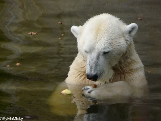 Lars spielte heute mit dem winzigen Rest des grünen Eimers den ihm Herr Dörflein noch reingeworfen hat! Die Eisbärdamen waren heute nicht zu sehen.