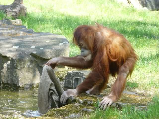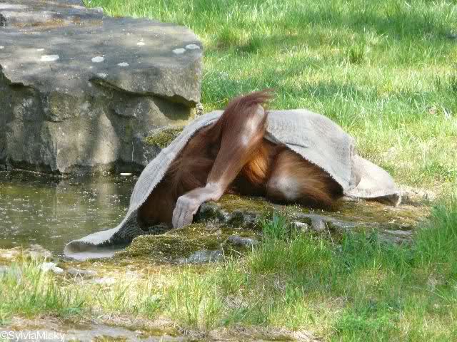 Auch bei den Orang Utans war Jutesackmode angesagt. Wie sich überhaupt auf den ganzen Affenaußenanlagen viele Jutesäcke befinden.