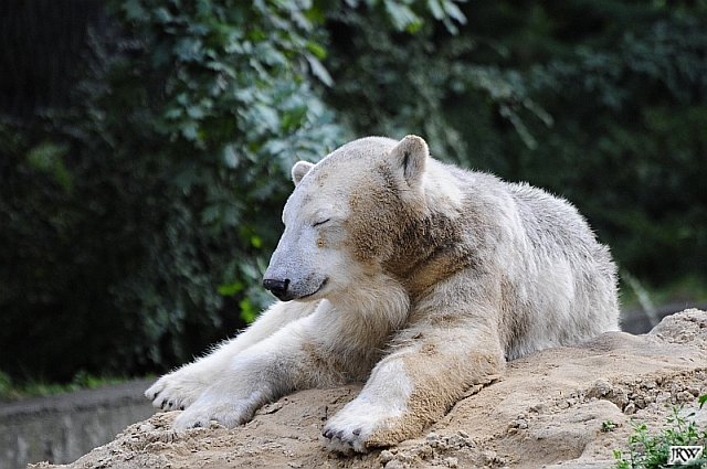Leider kam ich heute aufgrund eines anstehenden Termins erst spät in den Zoo. Um genau zu sein, es war schon dreiviertel elf. Ich nahm die Beine in die Hand, rannte bei den Malaien vorbei, hin zu den Eisbären. Aber ich kam zu spät – die Fütterung war vorbei. Es war im wahrsten Sinne des Wortes schon alles gegessen.