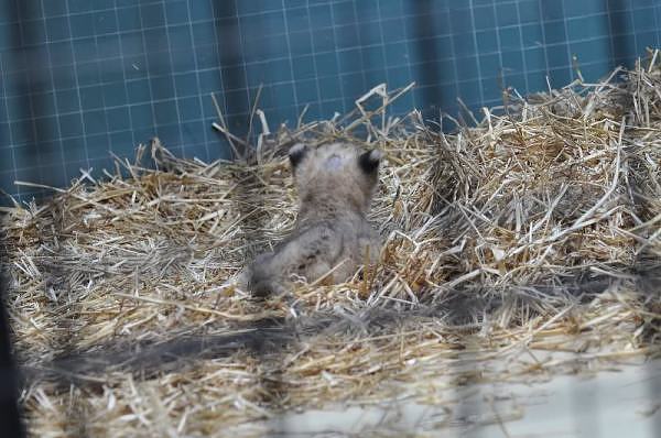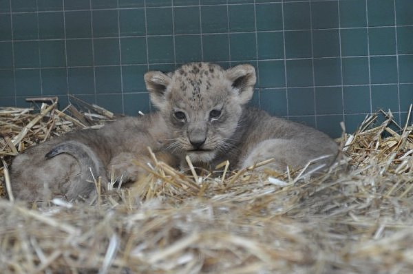 Wir haben die kleinen Löwen am 23.4 und am 24.4 besucht. Sie sind noch sehr klein. Das größere Kind sieht ganz normal aus. Beim Laufen rutschen ihm die Hinterbeine aus. Der Fußboden ist glatt. Bei Knut holte Thomas Dörflein die Matten um das Laufen zu erleichtern.