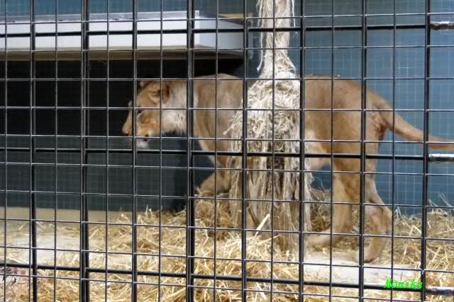 Leider gibt es über die drei kleinen Löwenbabys heute auch nichts positives zu berichten. Ich war heute in Abständen dreimal im Raubtierhaus. Am Vormittag lag Aketi im Käfig und schlief tief und fest, während die 3 Kleinen in der Babybox jämmerlich am Schreien waren. Aketi ließ sich nicht stören. Gegen Mittag das gleiche Bild.