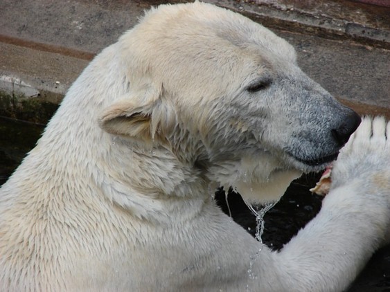 Heute war ich endlich mal wieder im Tiergarten, wollte wenigstens noch mal einen halbwegs ruhigen Tag dort verbringen, bevor das Flockechaos losbricht. Felix ist ja leider nicht mehr da, keine Ahnung, ob schon unterwegs oder noch in der Höhle. Ich hoffe nur, dass er gut untergebracht wird und vor allem nicht mehr dauernd durch die Gegend reisen muss. Vera war anfangs, wie leider oft üblich, am auf und ab tigern, hat sich dann aber doch auch mal ins Wasser gestürzt und sich ein paar Brocken Essbares geangelt: