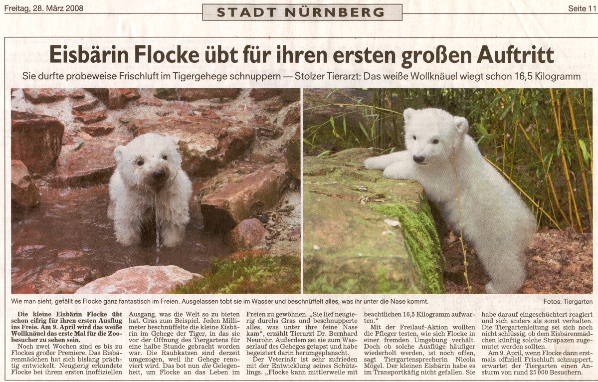 Ich finde es sehr schade, dass Nürnberg ihn nicht dauerhaft behalten kann. Ich hatte überlegt, morgen vielleicht endlich mal wieder in den Tiergarten zu fahren und ihn noch mal zu besuchen, bevor er gehen muss, aber das wird wohl nichts mehr werden