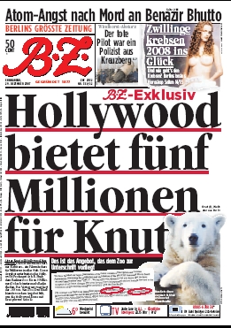 Die Nachricht von dem Film ist gestern auch schon im RBB in der Abendschau im Anschluss an den freitäglichen Knutbericht gekommen. Da wurde zwar eine etwas niedrigere Summe genannt, aber insgesamt zeigt das, dass das Interesse an Knut bzw. seiner Geschichte weltweit sehr groß ist und wohl auch bleiben wird.