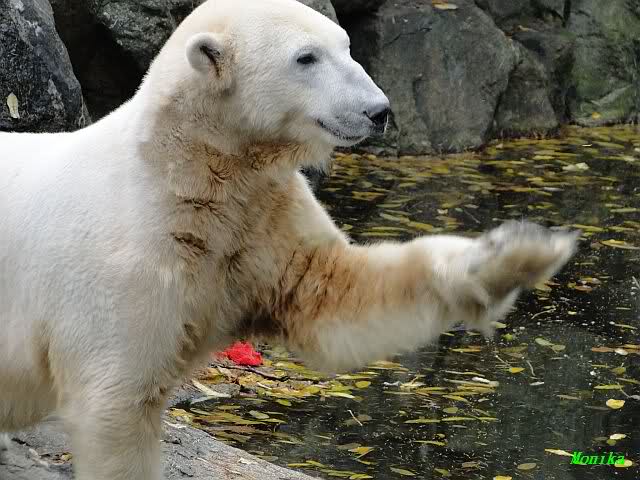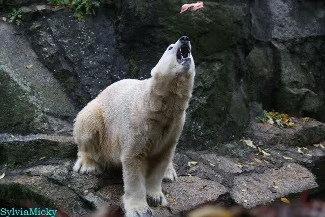 Danke für die heutigen Beiträge und wieder aktuellen Berichte/Fotos von Knut & Co. Schön zu sehen, das Knut das Heben der Tatze um nach Futter zu betteln nicht verlernt hat.