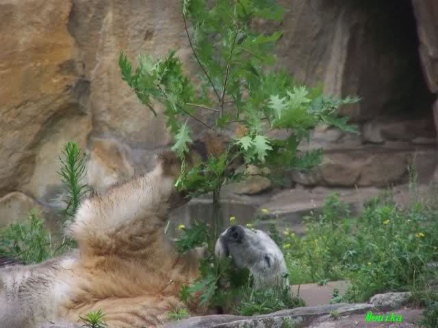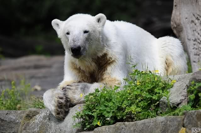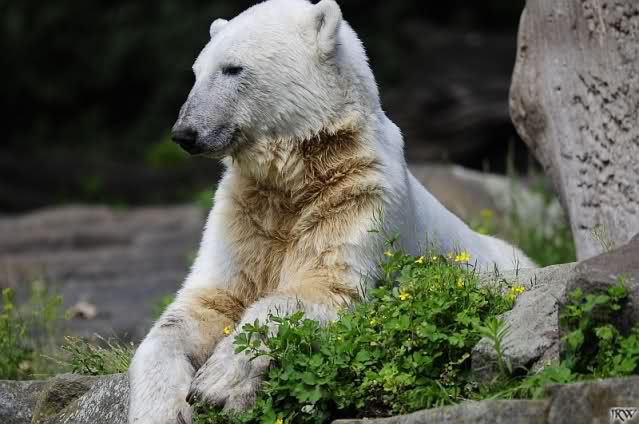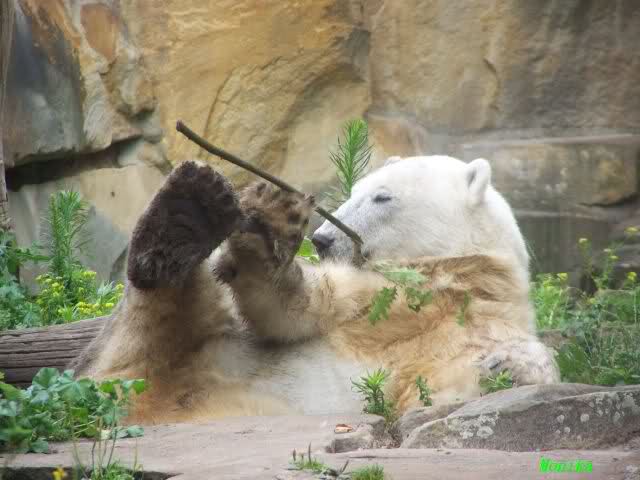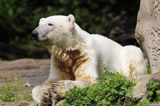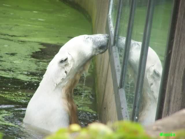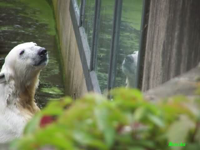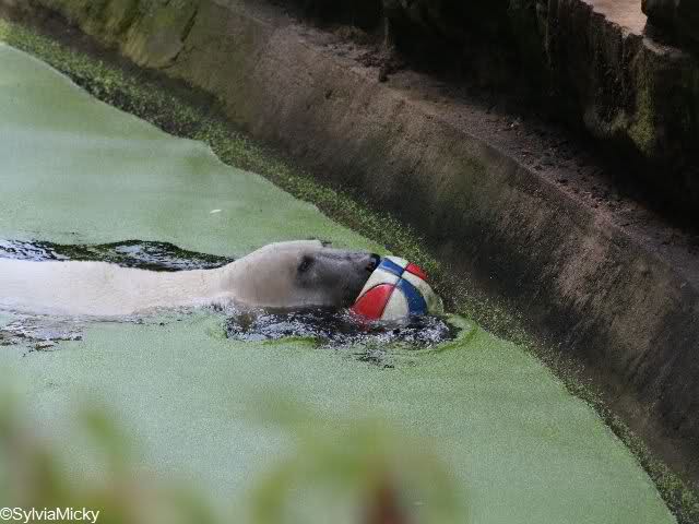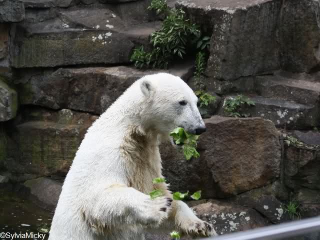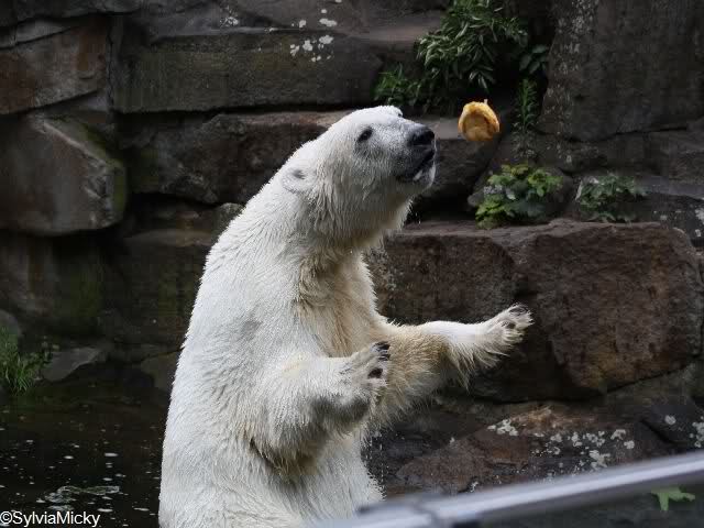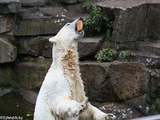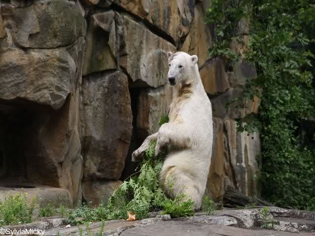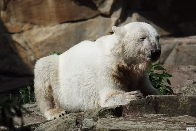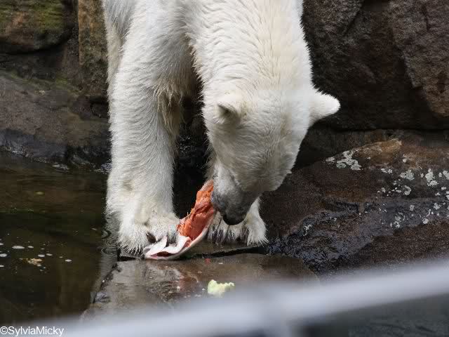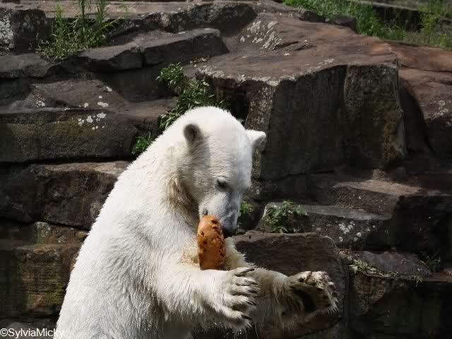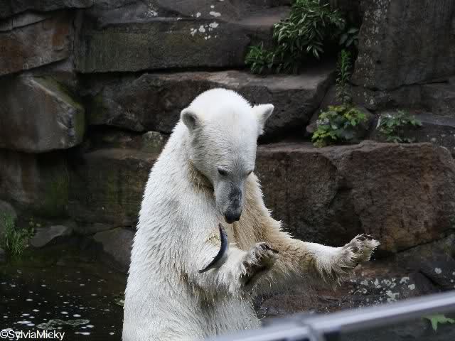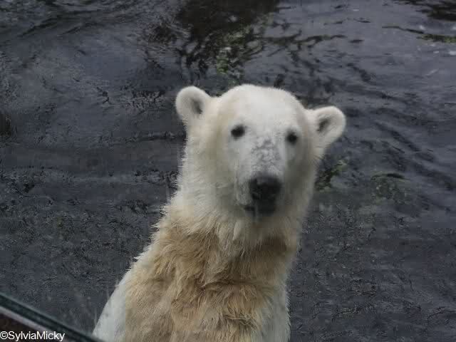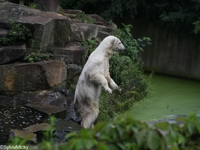 Heute waren wir erst nach der großen Show im Zoo, aber für uns ist ja der Magnet nur Knut, der uns strahlend weiß empfangen hat, er sah aus wie ein Silberstrahl, einfach traumhaft schön!!! Puh, war das heute eklig schwül,auch die Tierchen haben darunter gelitten, und lagen da wie hingebrezelt. Als wir (von der geöffneten) Waldschänke wieder zu Knut gingen, wer lag da (wie immer) auf der Bank?, na?,Käpten-Iglo mit entblößtem schwammigen Oberkörper, total ekelig, sein Hosenstall stand auch auf, und gleich nebenan der Kinder-Spielplatz, "pfui-pfui"!!! Niemand traut sich diesem Menschen etwas zu sagen, der er sofort anmaßend wird,und laut! Dann schreit er immer,Knut komm her, hier ist dein Papa, habe sofort gesagt "Sie" sind absolut nicht Knut sein Papa, wieder freche Antwort!! Wir verstehen absolut nicht, das so ein Mensch überhaupt in den Zoo darf, ist ja eine Belästigung für Mensch und Tier, auch fremde Besucher sind sehr entsetzt über diesen Zoo-Besucher, schade!!!