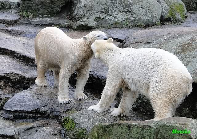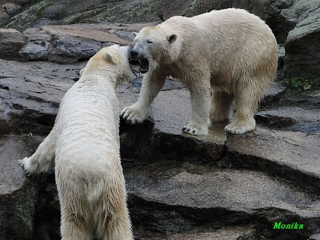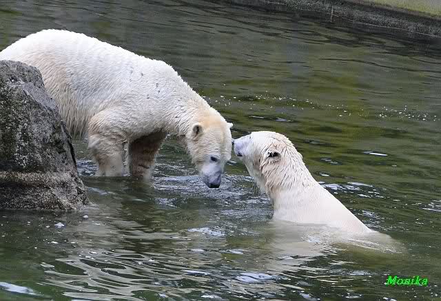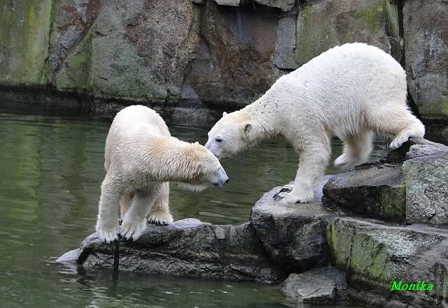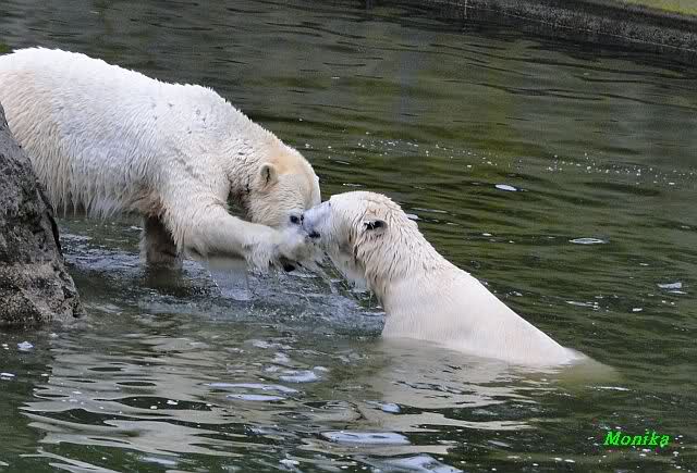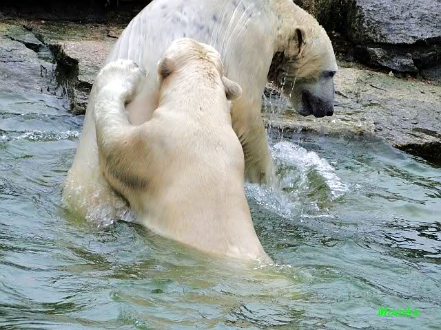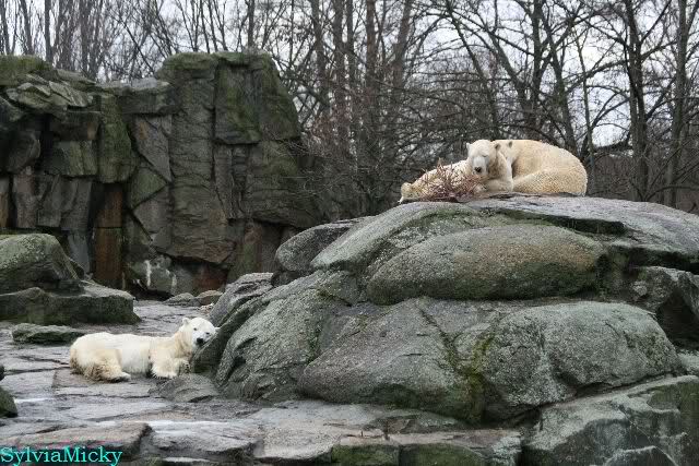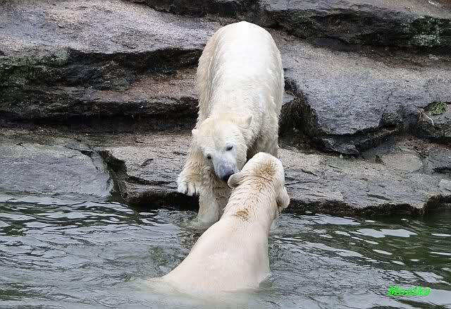 Wow, das war ja heute wieder ein toller Tag bei Knut & Co. Die Fotos zeigen es ja klar und deutlich. Was für eine Entwicklung auf dem Eisbärenfelsen.