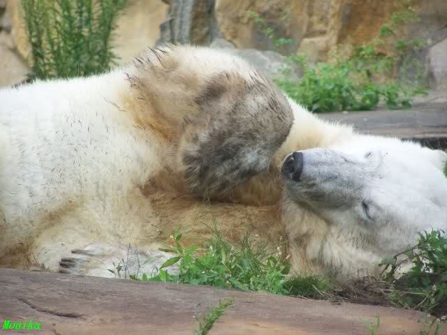 Hartmuth, Doris, SylviaMicky and everybody who were comforting Knuti during the thunder storm - I'm so glad to know there were so many of you with Knuti when the poor boy was afraid of the thunder and lightnings. He looks like a frightened'kleenet Kind' in the photos. I can't understand why he wasn't allowed to go into his cave under those circumstances...