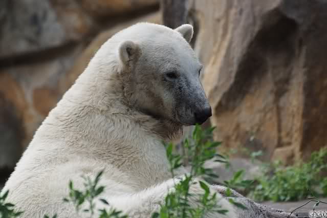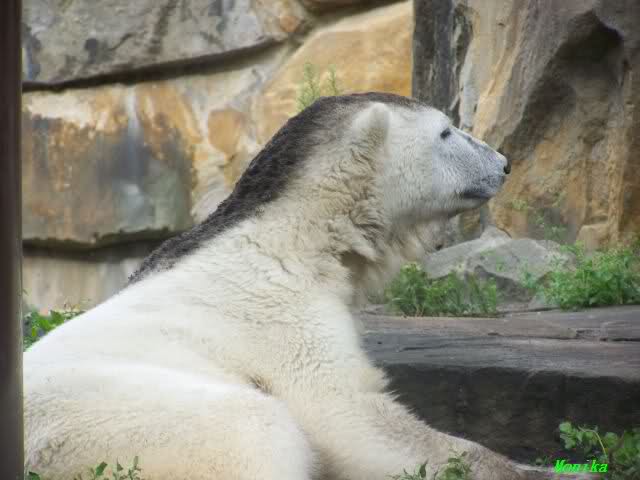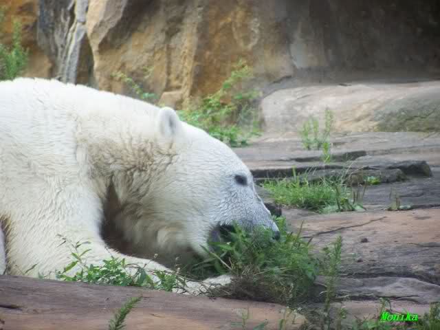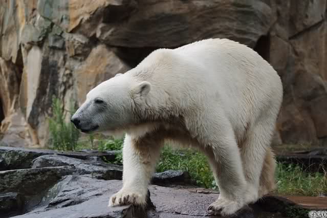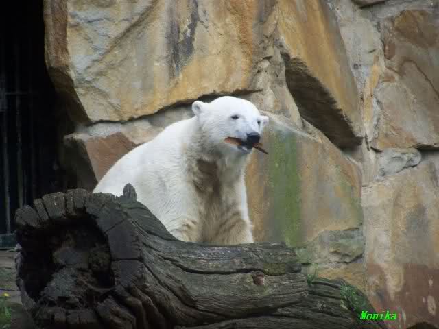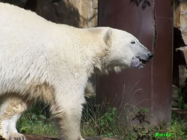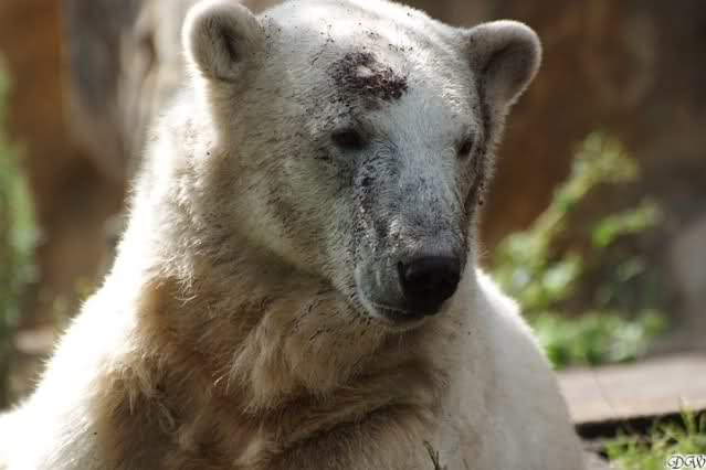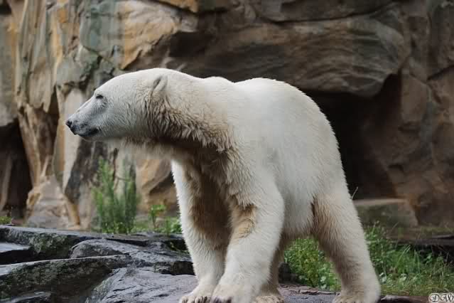 Auch ich war am Samstag Abend nochmal kurz im Zoo. Knut lag wie zu dieser Zeit immer vor seiner Höhle um (meist gegen 17:30 h) Einlass zu bekommen und dann sein Abendessen zu bekommen. Als er merkte, das da nichts passiert erhob er sich und trottete langsam über seine Anlage um hier und da noch etwas Fressen zu suchen, er fand Karotten und Äpfel.