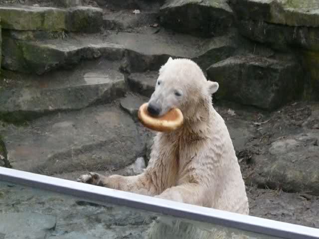 Knut wurde heute gut gefüttert. Zum Schluß gab es noch ein großes Brot.