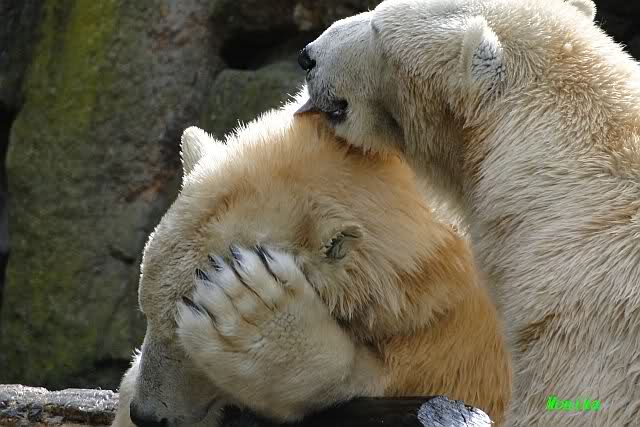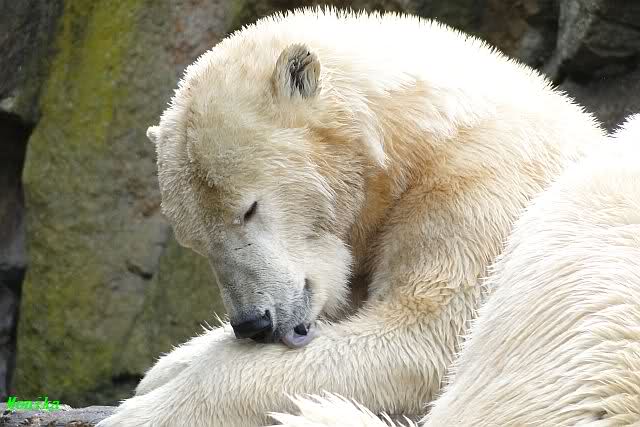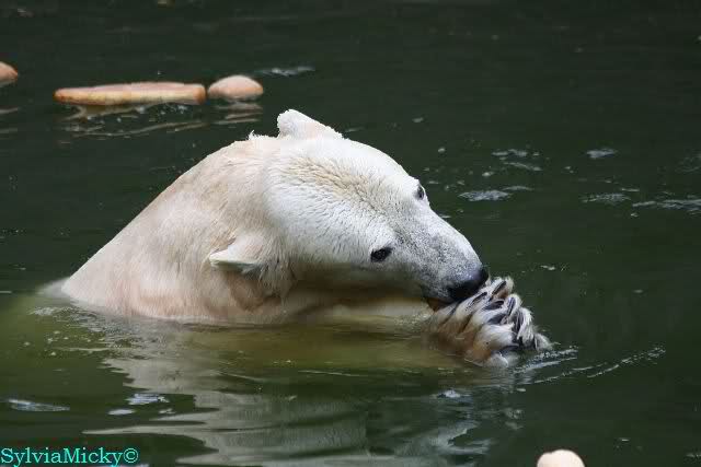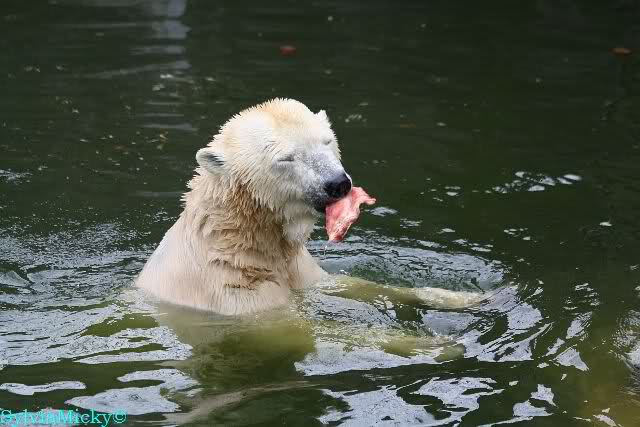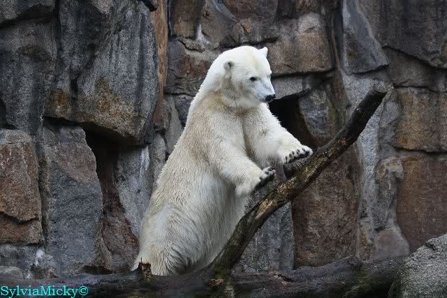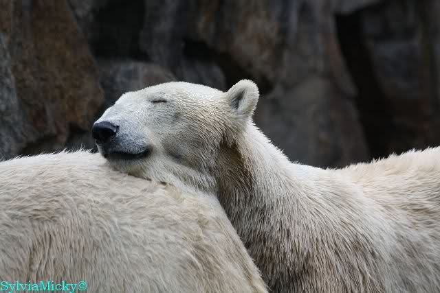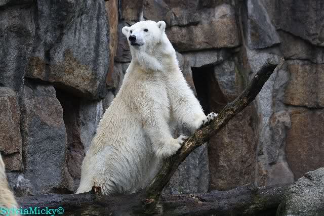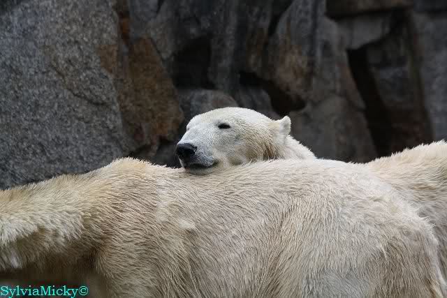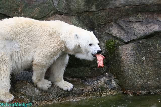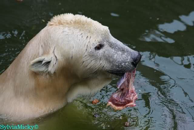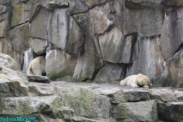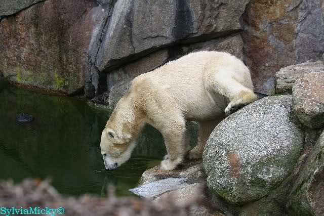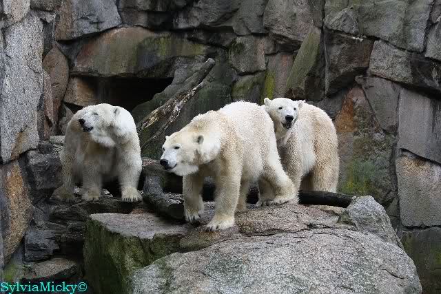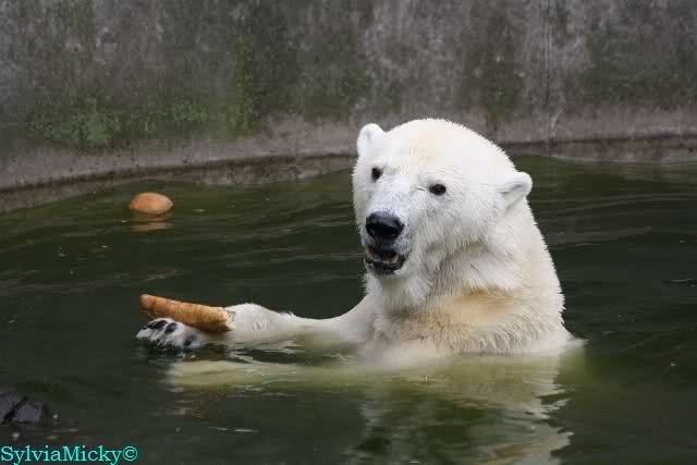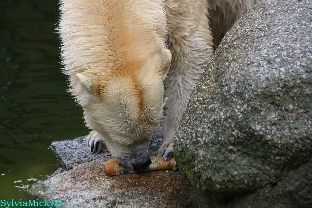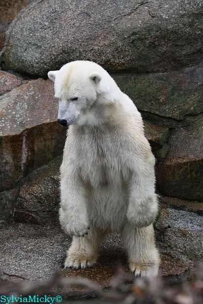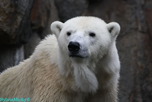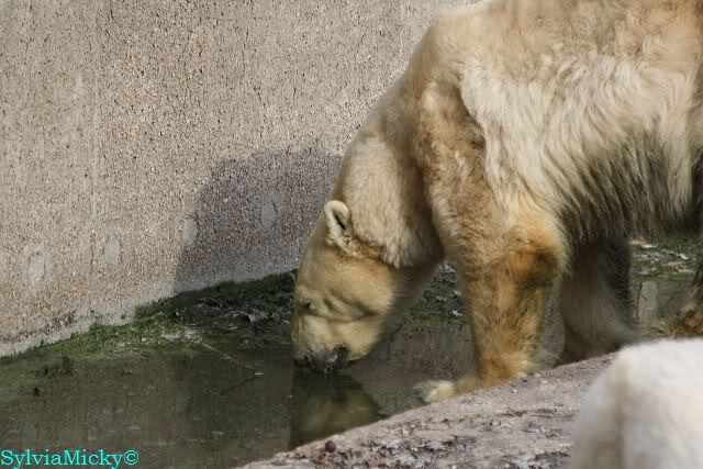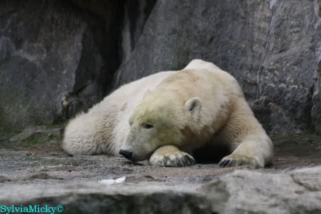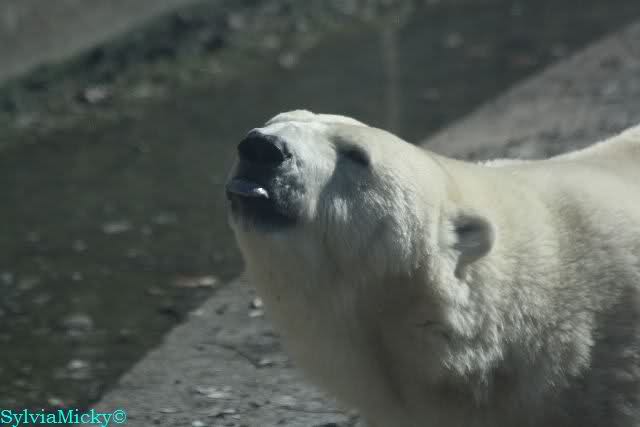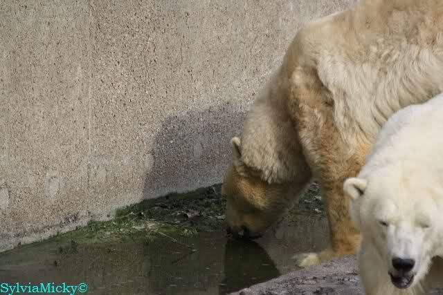 Ich wollte heute eigentlich nicht in den Zoo gehen. Aber eine sehr nette Knutfreundin sagte mir, daß die großen Eisbären auf der kleinen Anlage sind.