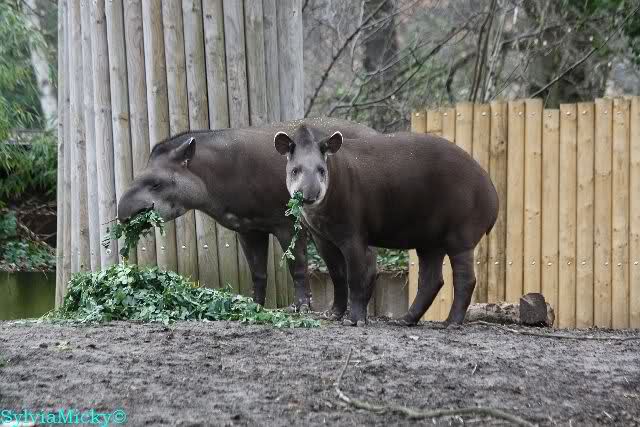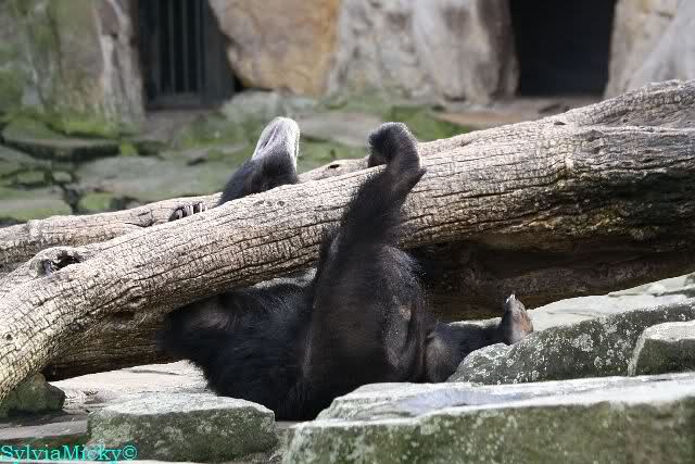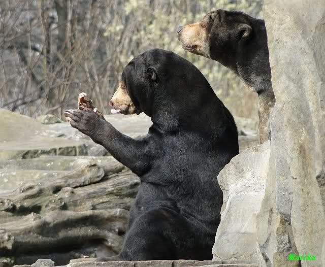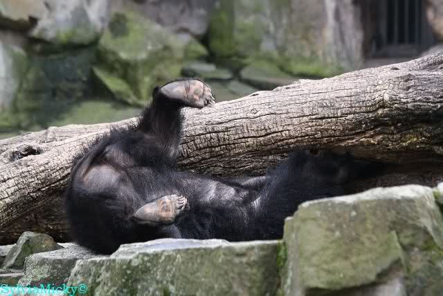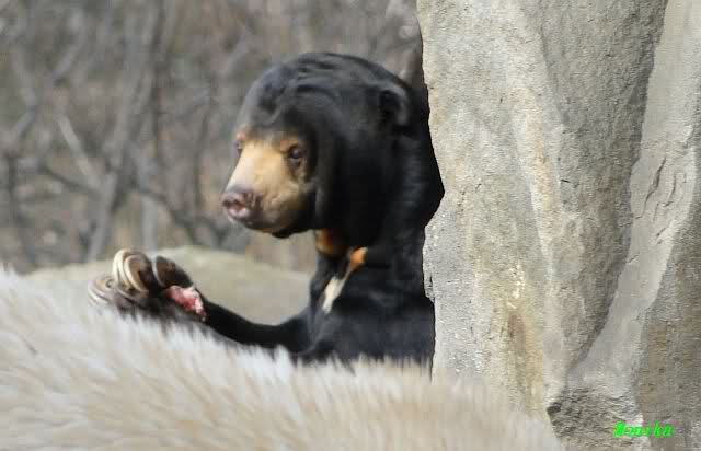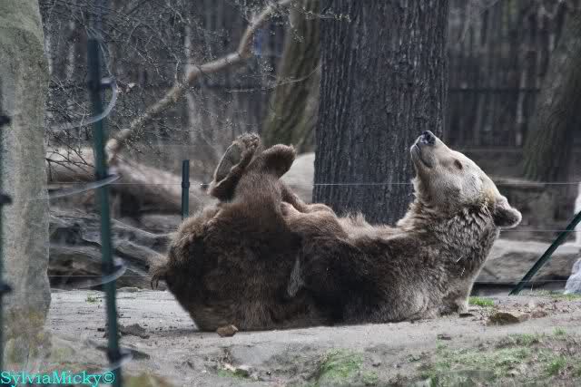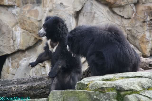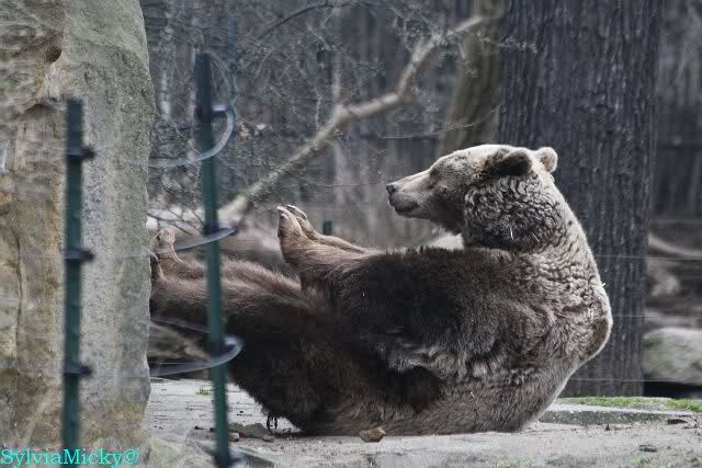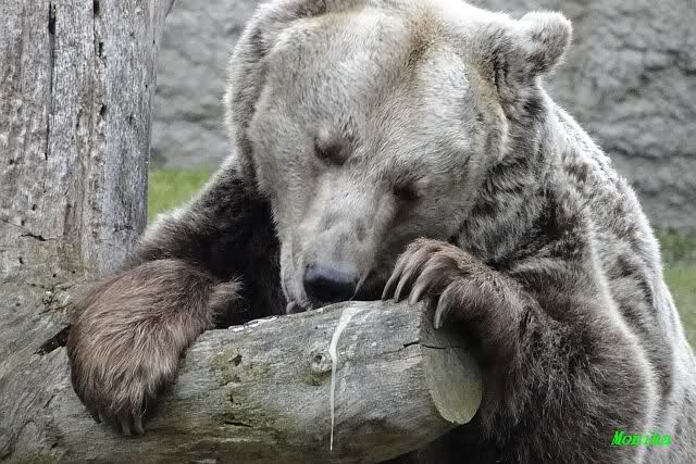 Bei den Braunbären verteilte H. Röbke heute Morgen Honig auf den Bäumen, so dass Siddy und Petzi eine Weile damit beschäftigt waren, diesen aufzuschlecken.