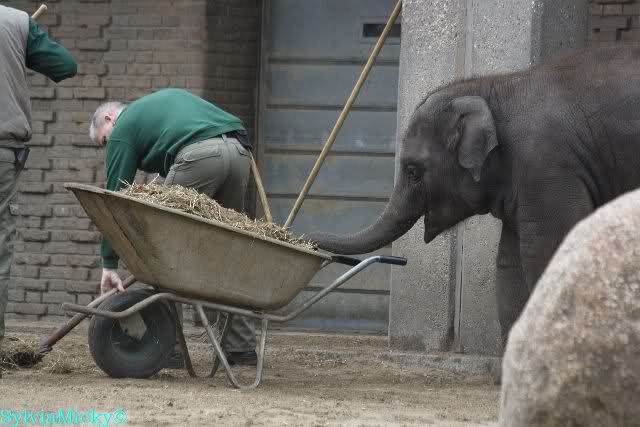 Gegen Mittag gab es für die Elefanten Rüben. Ko Raya ist nicht nur besonders niedlich, sie ist auch sehr intelligent. Die Rüben waren zu groß. Also nahm sie eine Rübe, legte sie auf einen Stein und trat sie klein, da es auf dem weichen Sand viel schwieriger ist.