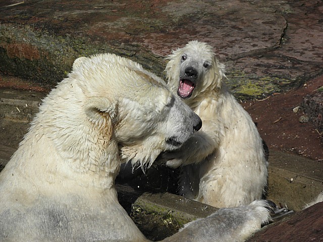 Au Backe, so eine verärgerte EisbärMama, sieht direkt zum Fürchten aus. Der arme Felix, sicher wollte er nur nach seiner Familie sehen.