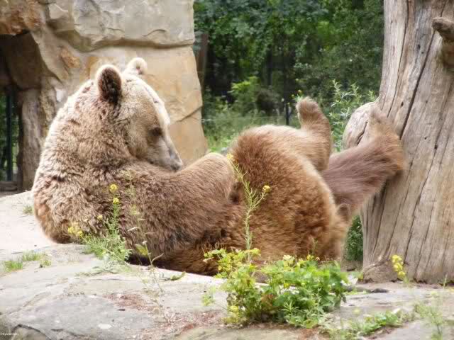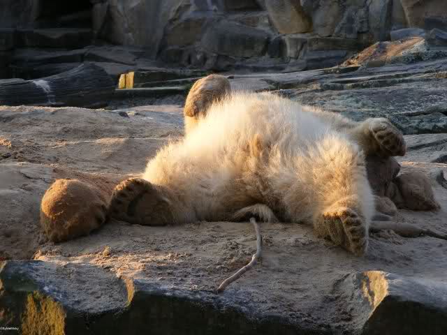 Heute wollte ich mir einen ganz langen Zoo-Tag machen und schon beizeiten damit anfangen. Als ich kurz nach neun im Zoo eintraf, schlief Knut gerade. Er hatte sich in seine Kuhle gekuschelt und nur der kleine weiße Rücken schaute heraus.