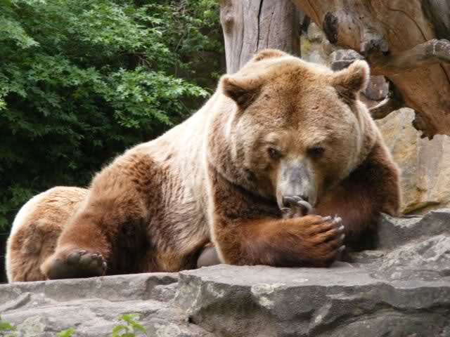 Überhaupt waren die Tiere etwas „schaumgebremst“ heute. Es kann am Wetter gelegen haben. Hier in Berlin war es vormittags warm und sonnig, aber sehr schwül. Sicher empfanden die Tiere es genauso, zumindest die Malaienbären, zu denen ich anschließend ging. Sie lagen im hinteren Teil ihrer Anlage und dösten.