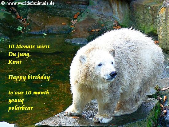 liebe Lily-Dein Eintrag hat mich fst sentimental gemacht-er klingt schon so nach Abschied Obwohl der Tag bei uns heute wettermäßig trübe anfängt, wollen wir ihn doch genießen. Vielleicht geht heute jemand zu Knut und kann dann berichten, wie er wieder glücklich mit seinem Spielzeug spielt und viel Freude hat. Diese sieht man ihm auch wirklich an.