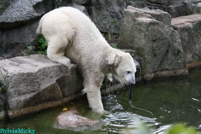 Und wie das alte Bild nur das Knut jetzt im Gehege ist .