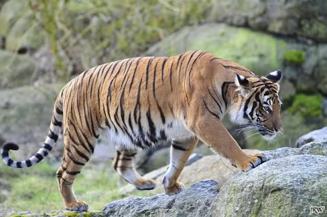 Hier ist jemand, der heute sehr glücklich war, der Tiger. Endlich wieder draußen. Er flitzte über die Anlage und schaute sich dann die Besucher an.