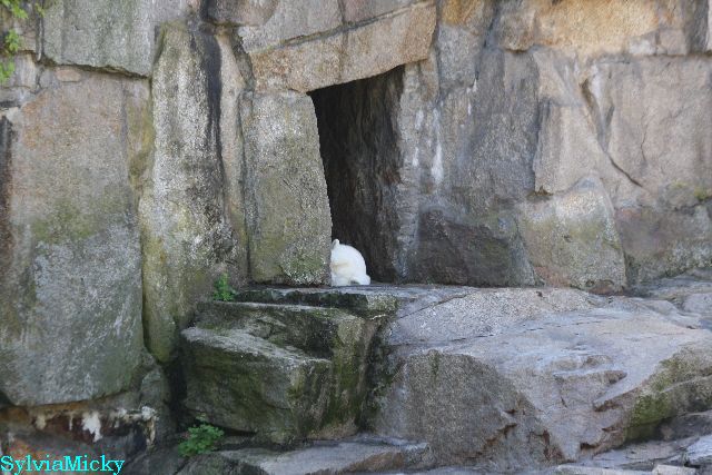 Monika, die Zweiglein hat er sich immer in einer Felsspalte bei der September-Ecke versteckt. Knut hatte auch noch ein kleines Versteck bei seinem Felsplateau. Genau wie es sich für einen süßen Friemel-Fritz gehört. Er hätte auch schon längst einige der Pflanzen herausgezupft, die auf "seiner" Seite wachsen. Platte Bälle hat er immer gefunden. Vielleicht lernen es die Großen ja noch.