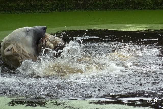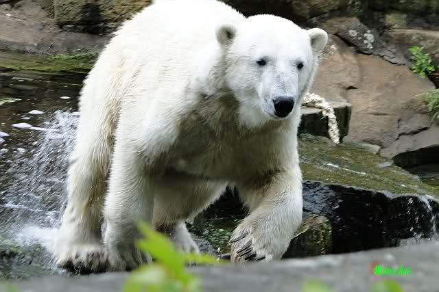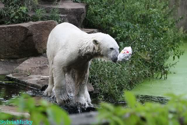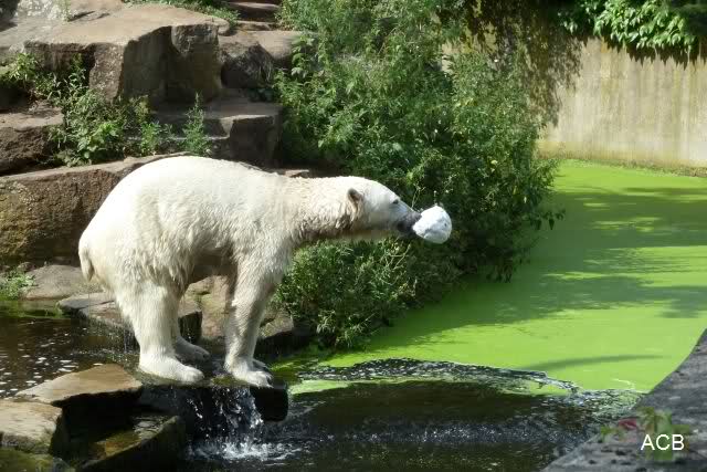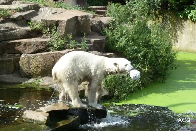 Als ich am späten Vormittag bei Knut ankam, war er am laufen. Kurze Zeit später ging er zum spielen ins Wasser. Er soll morgens auch schon schön gespielt haben.