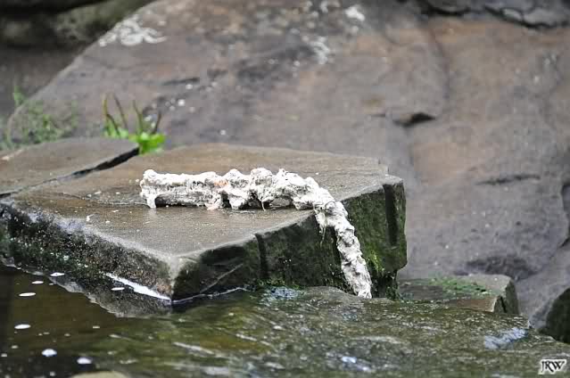 Kurz nach der Fütterung warf Herr Röbke einen riesigen Zweig zu Knut, der ihn sich sofort holte. Der Zweig war so groß, dass Knut öfter darüber stolperte, als er ihn über die Anlage trug. Knut spielte lange mit mit ihm bis er beim friemeln mit dem Zweig in den Pfoten einschlief. Als es heftig angefangen hat zu regnen, bin ich gegangen.