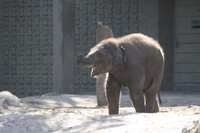 Ko Raya tobte im Sand herum und verknotete ihren Rüssel