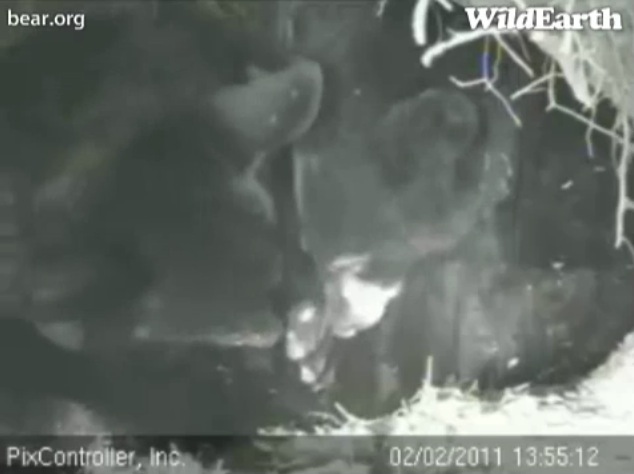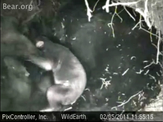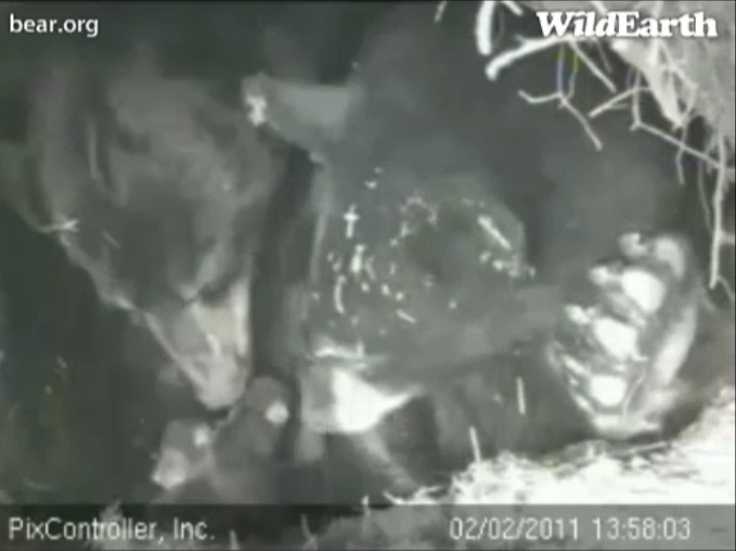 Lily versucht die Lage mit den Kleinen zu meistern. Hope leckt ein Kleines und ist lieb. Die Kleinen klettern auf der Suche nach Brustwarzen und schreien nicht zu arg in diesem 10-Grad Wetter, was 312 Grade wärmer ist als letzte Nacht. Es ist einer der besten Blicke auf die Familie und eines das wir zu den Sendern schicken wollen um zu sehen wie sie darauf reagieren. Wir sehen das alles ohne dass jetzt seit dem 13. Januar jemand in die Nähe der Höhle ging, seit fast 3 Wochen. Es ist diese Art der ungestörten Beobachtungen, die wir niemals vor diesen Höhlenkameras hatten.
