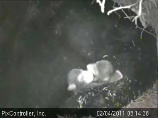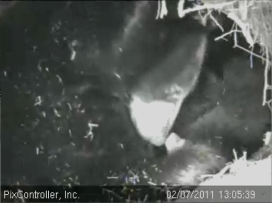 Wir bekommen tägliche Möglichkeiten die Kleinen zu sehen, nicht wie letztes Jahr um diese Zeit wo wir nur selten Einsicht bekommen haben. Wir denken das ist, weil Hope ihre Nase hineinsteckt (im wörtlichen Sinne)- Wir hatten Bedenken, dass Ihre Bestrebungen zu nuckeln zu viel kalte Luft an die Kleinen lassen, doch war unsere Sorge überflüssig. Ja, sie macht Versuche zu nuckeln, doch den Kleinen scheint es gut zu gehen. Sie trinken viel und sehen kräftig aus, wenn sie herum klettern.