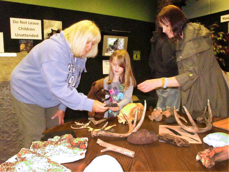 Eva untersucht den Jungbären-Raum am Bären Zentrum mit ihrer Mutter June (rechts) und Dana Coleman (links) – 14. Juni 2012