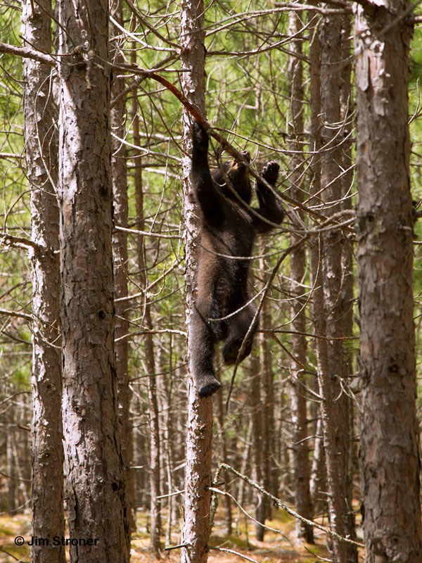Jewel, Herbie und Fern waren die Bären, die wir heute beobachten konnten. Als wir Jewels Signal näherkamen sahen wir ein Junges auf eine Kiefer flitzen. Wir dachten wir hätten sie gefunden. Doch das Junge war alleine, so gingen wir weiter dem Funksignal nach bis wir Jewel ungefähr 50 Yards von einer Kiefer entfernt fanden. Jewel erkannte und kam mit großen Schritten und Fern an ihren Fersen zu uns. Als wir damit beschäftigt waren Jewels Batterien auszuwechseln verschwand Fern in Richtung einer Kiefer und Herbie.