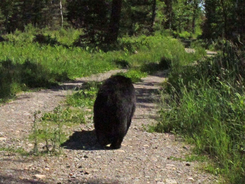 Als die Nüsse aufgefressen waren wurde Sharon von einem kleinen ausgefranzten Riss an meinem Hosenbein fixiert. Sie leckte es, nahm es ins Maul und biss es mit ihren Schneidezähen. Sie schien es entfernen zu wollen. Merkwürdiges Gefühl von einem Bären „gepflegt“ zu werden. Sharon machte sich alsbald auf den Weg und ich machte mich auf den langen Rückweg zu meinem Auto.