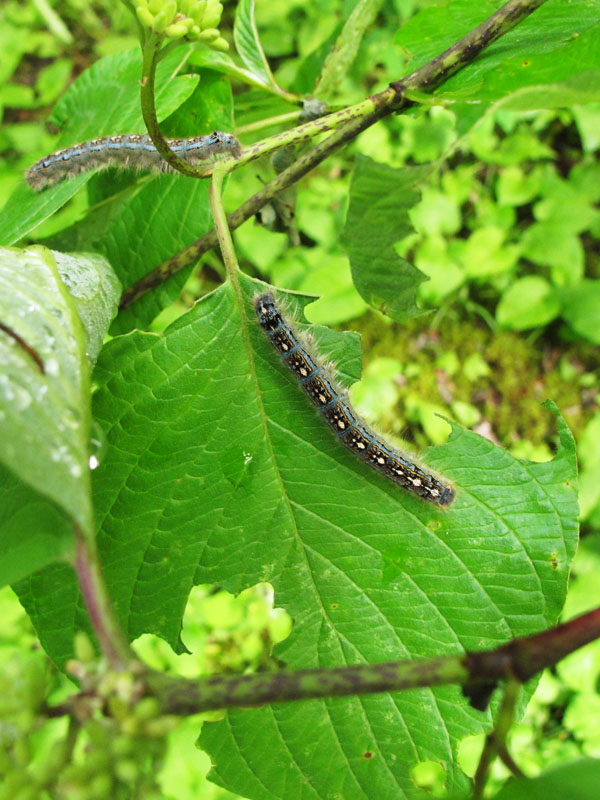 Raupe auf Rundblättrigem Hartriegel (Cornus rugosa) – 11. Juni 2012