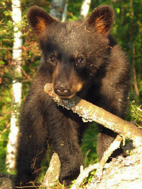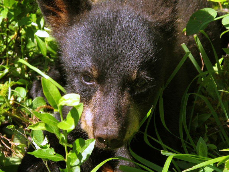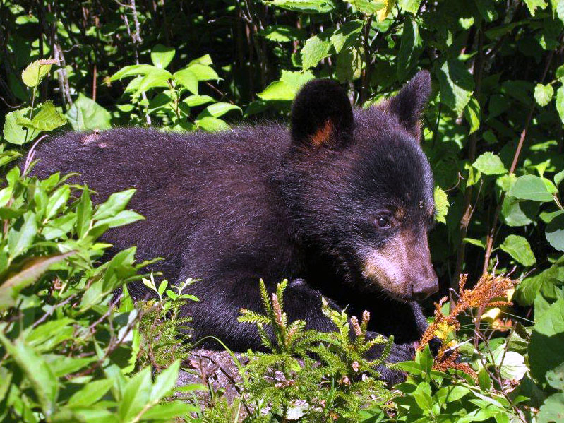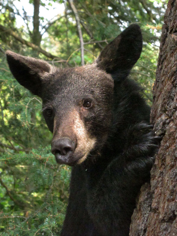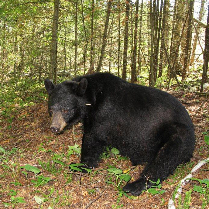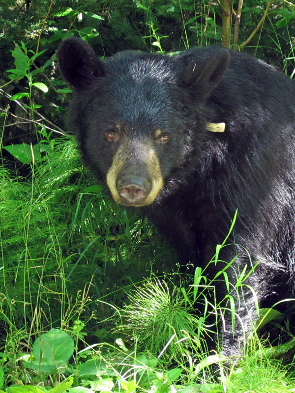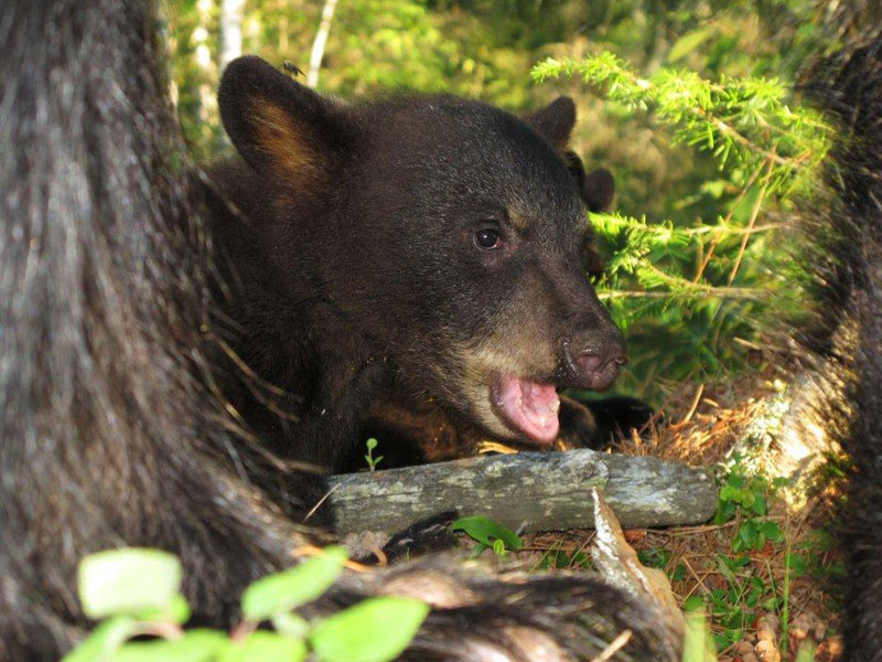 Wir besuchten Braveheart die diesen heißen feuchten Tag in einem dichten schattigen feuchten Bereich, umgeben von Schwarzen Eschen, Zedern und Balsamtannen, verbrachte. Sie lag auf ihrem spärlich behaarten Bauch mit dem Kopf gebettet auf einem moosigen Baumstamm. Sie hob ihren Kopf, legte ihn wieder nieder und schloss ihre Augen. Wir sahen, dass sie einfach nur ruhte und gingen wieder.