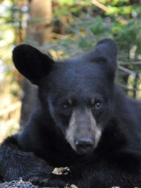 Wir lockten sie auf die Waage – 121.5 Pfund. Als sie vertrauensvoll aufstand und sich beugte, erhaschten wir den Blick auf ihre vielgenutzte Brustwarze die auf kürzliche Beanspruchung schließen ließ. Heute am frühen Morgen berichtete jemand, dass er einen Bären ohne Halsband mit 3 kleinen Jungen die Straße überqueren sah. Vielleicht war das die Antwort auf dieses Puzzle.