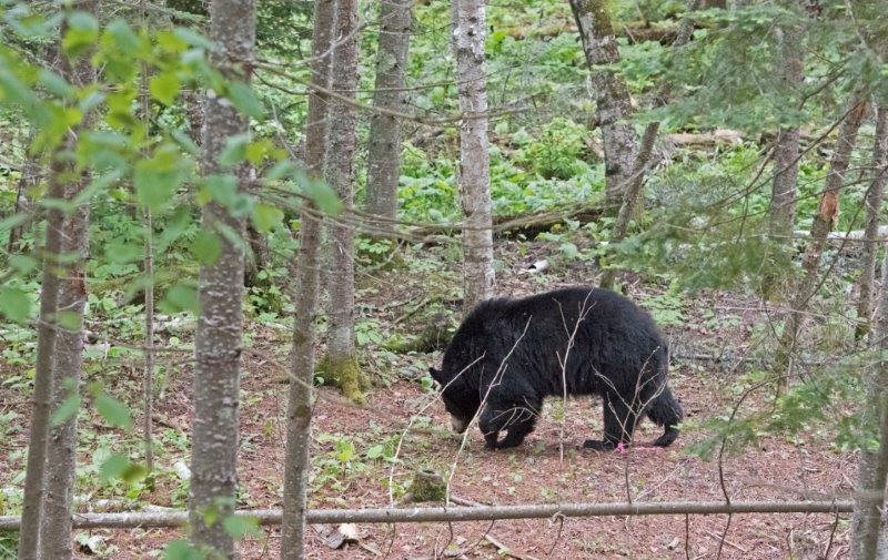Dieser Tag fing wunderbar an. Unmittelbar nach Tagesanbruch entdeckte ich Wellen am Biberdamm, der 30 Yard von der WRI Hütte entfernt ist. Ein Biber hat daran gearbeitet. Wir haben bemerkt, dass der Waldsee immer höher wurde. Ich lief, in Erinnerung an eine Zeit vor einigen Jahren, als Donna und ich mucksmäuschenstill am Biberdamm saßen und der Biber kam und anfing in nicht einmal 5 Fuß Entfernung von uns, daran zu arbeiten hinunter um mir das anzuschauen,. Doch der Biber heute war sich meiner wohl bewußt. Er hörte mich durch die Bäume kommen und schlug mit seinem Schwanz. Er schwamm dann hin und her und beobachtete mich einige Minuten lang, bis ich ging. Das ist ein Anblick, den früh aufstehende Schwarzbär Feldkurs Teilnehmer genossen haben. Andere sind mit dem Kanu am Ufer entlang gefahren und haben Biber, Bisamratten und Entenmütter mit ihren Jungen in der stillen ruhigen Morgenruhe beobachtet. Doch Kanuten waren hin und hergerissen, weil das auch eine Hauptzeit ist, Bären zu sehen und mit Lily Fans zu sprechen, die sie gerade treffen. Doch auch nette Bärenfotos wurden aus dem Kanu aufgenommen.