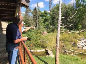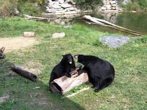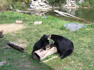 Am Bären Zentrum forderten die Mitarbeiter dazu auf, dass die Bären zeigen wie agil sie sind auf den Pat Baum zu klettern, während Besucher auf dem Beobachtungsbalkon Bilder auf Augenhöhe machen können.
