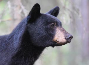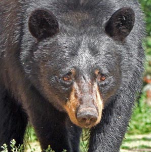Einer der ersten Bären, die der Schwarzbär Feldkurs zu sehen bekam, war Donna, die mir gute Erinnerungen zurückbringt. Sie war Teil des Dot und Donna Duos, die damals im Jahr 2000 Blackhearts erster Wurf waren. Ich lernte gerade die Berührung, was sich als die Universalsprache herausstellte, die mir half eine Brücke der Sprache zu bauen, die dazu führte bei den Bären mehr Vertrauen zu erzeugen. Als Ergebnis war Donna gewillt ein Senderhalsband während der meisten der 17 Jahre, die sie friedlich mit Menschen in ihrem Revier zusammenlebte. Heute wollte ich ein Bild von ihrem sanften Gesicht und Augen haben. Sie hat sich nicht gewehrt, als ich sie nett bat in die Kamera zu schauen so machte ich einen sanften Katzenton, der für einige Sekunden ihre Aufmerksamkeit erregte. Dann war sie wieder bei dem was sie machte und auf und davon um zu sehen, was ihre Jungen machten.