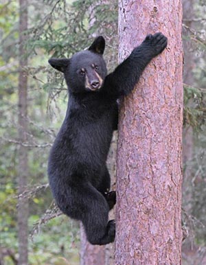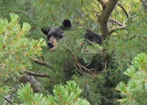 Die Bären machen ihren Teil um für Überraschungen zu sorgen. Eigentlich Überraschung für mich. Ich hatte gerade in der Nachbarschaft herumgefragt, ob jemand die 15-jährige Braveheart letztlich gesehen hat. Hatte niemand. Dann tauchte sie hier auf. Ich hatte sie einige Jahre lang nicht gesehen. Sie war genauso wie immer. Eine großartige Wiedervereinigung. Bären sind wie Elefanten. Sie vergessen nie. Irgendetwas hatte ihr Junges auf eine Weymouthskiefer geängstigt – das Junge mit dem Gesichtsausdruck.