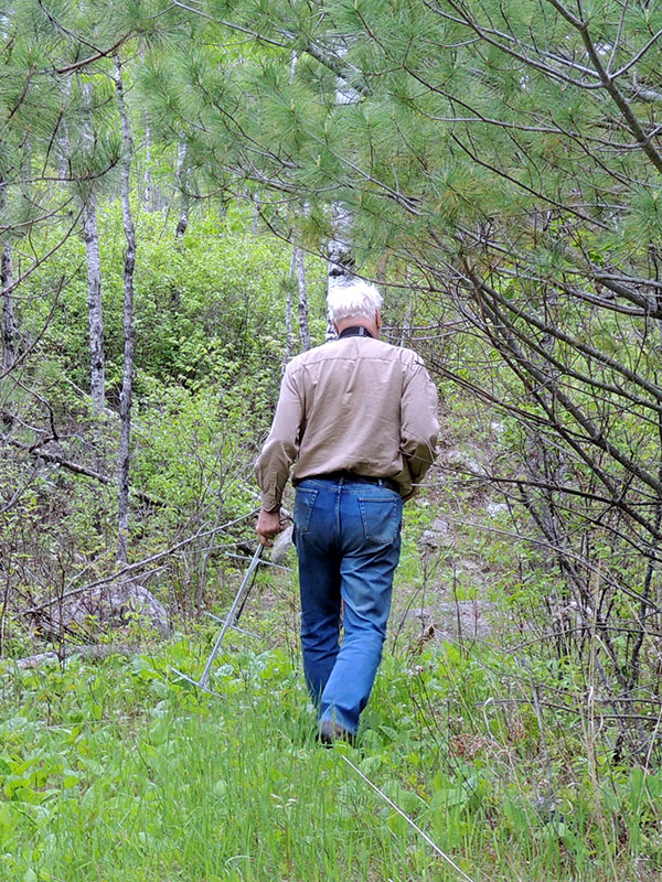 Zwischen den GPS Ortungen verließen wir uns auf die Telemetrie. Unterschiedlich starke Signale zeigen an, dass sie in Bewegung sind. Verschiedene Teile des Halsbandes senden verschieden starke Signale, so ist es so, wenn ein Bär in Bewegung is,t sendet es schwache und starke Signale da sich das Halsband bewegt. Die Familie war in Bewegung. Jewels und Ferns Sender-Halsbänder bewegten sich immer in die gleiche Richtung. Dann bekamen wir 2 GPS Ortungen von gleicher Stelle. Vielleicht hatten sie ein Plätzchen zum Ausruhen gefunden. Zu diesem Zeitpunkt waren sie nur zweizehntel Meilen von der nördlichen Straße entfernt. Wir wanderten hinein.