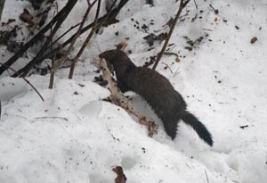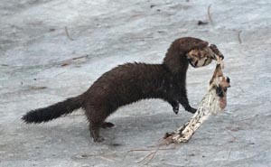 Ein Nachbar in einer halben Meile Entfernung hat auch einen Nerz der kommt um Hühnerflügel, die sie für die Graufüchse gekauft haben, zu holen, sie sehen auch Baummarder und Nerz. Ich weiß nicht, ob es die gleichen Tiere wie bei uns sind oder andere in dieser naturliebenden Gesellschaft freuen die Menschen sich, Tiere, einschließlich Bären, zu sehen.
