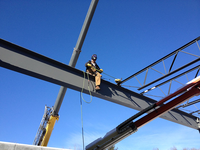 Funken fliegen, als das Dach an Ort und Stelle geschweißt wird – 07. Feb 2013